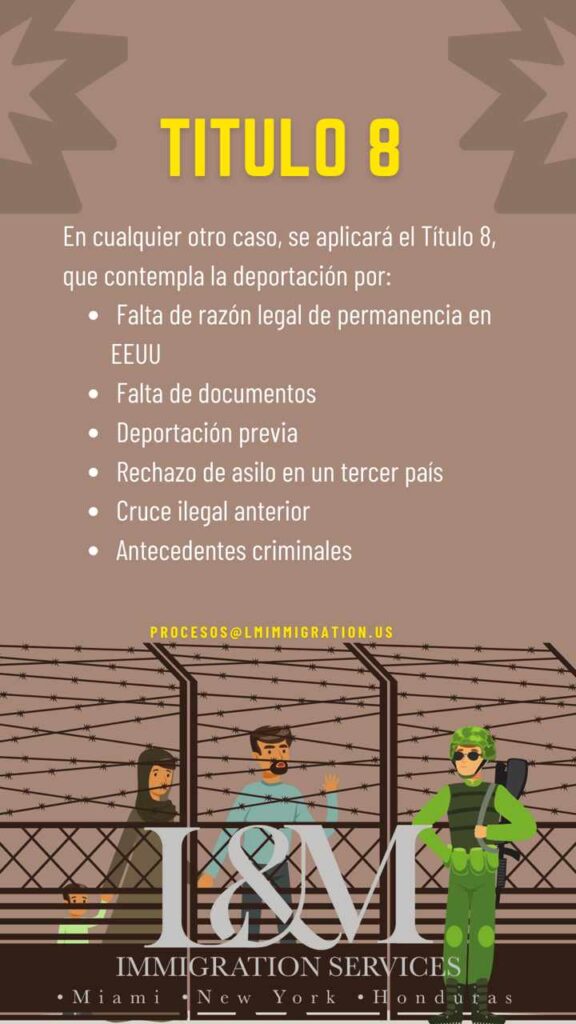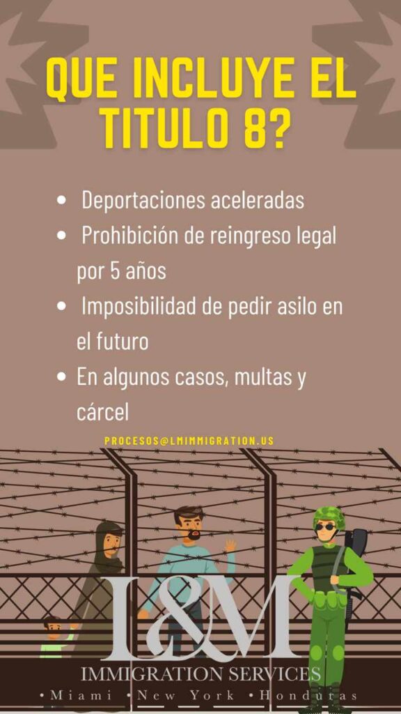 El Título 8 tiene décadas de antigüedad. Según esta normativa, los migrantes enfrentarán consecuencias más graves por cruzar la frontera ilegalmente. Las personas que crucen la frontera sin solicitar asilo primero serán expulsadas ​​bajo esa autoridad del Título 8.